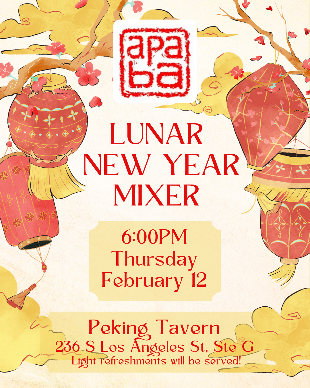 SABA-SC members are invited to attend APABA’s Lunar New Year Mixer on February 12 at 6:00PM at Peking Tavern in downtown LA. Food and drinks will be served and it’s a great chance to meet members of our sister bar organizations!