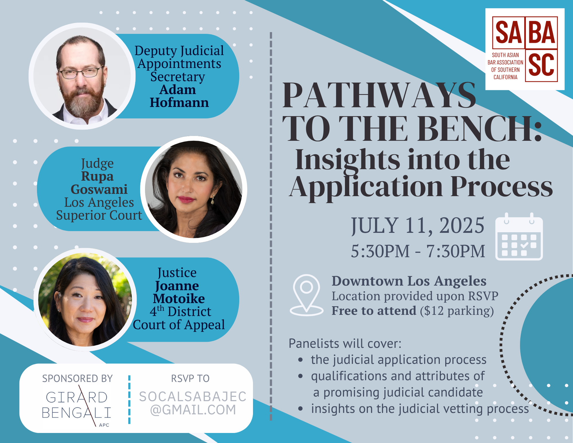 Join us in downtown LA for a panel with these three distinguished speakers who’ll give their insights about and advice on the judicial application process.