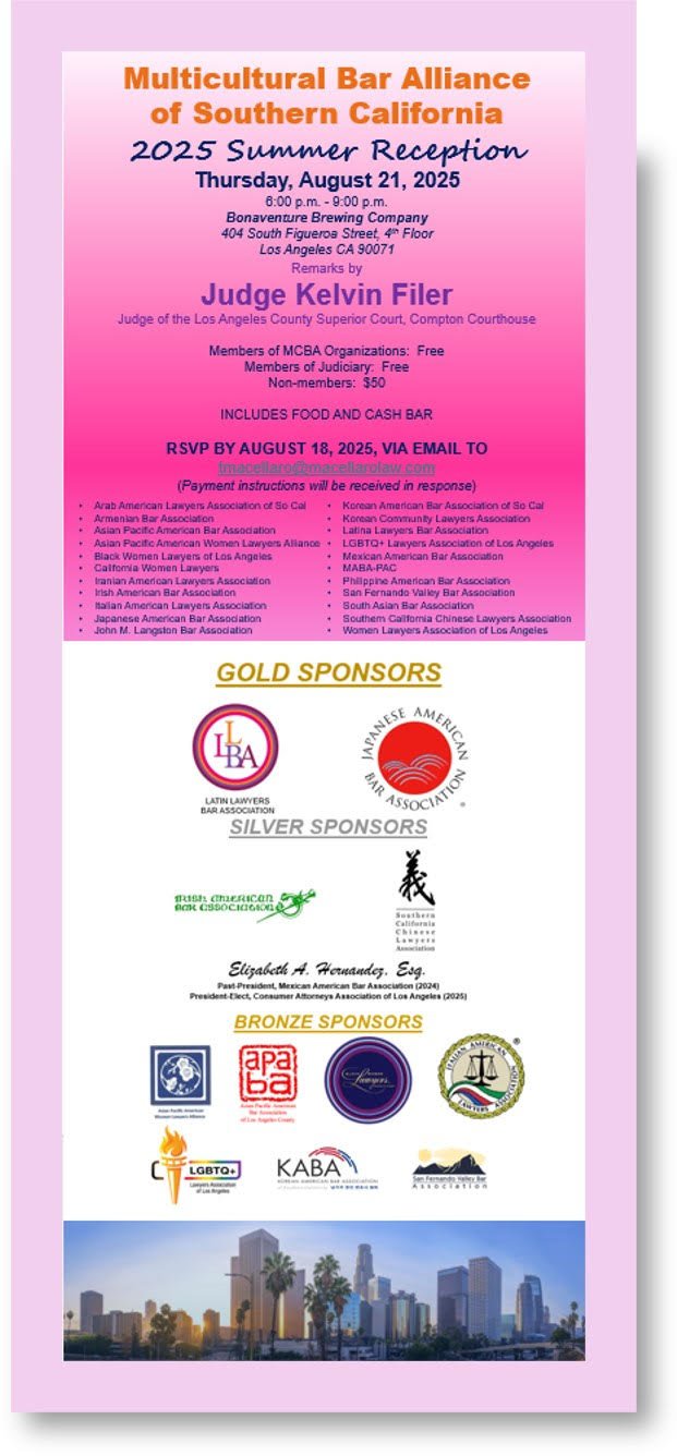 SABA members can attend the Multicultural Bar Alliance of Southern California Summer Reception for free!