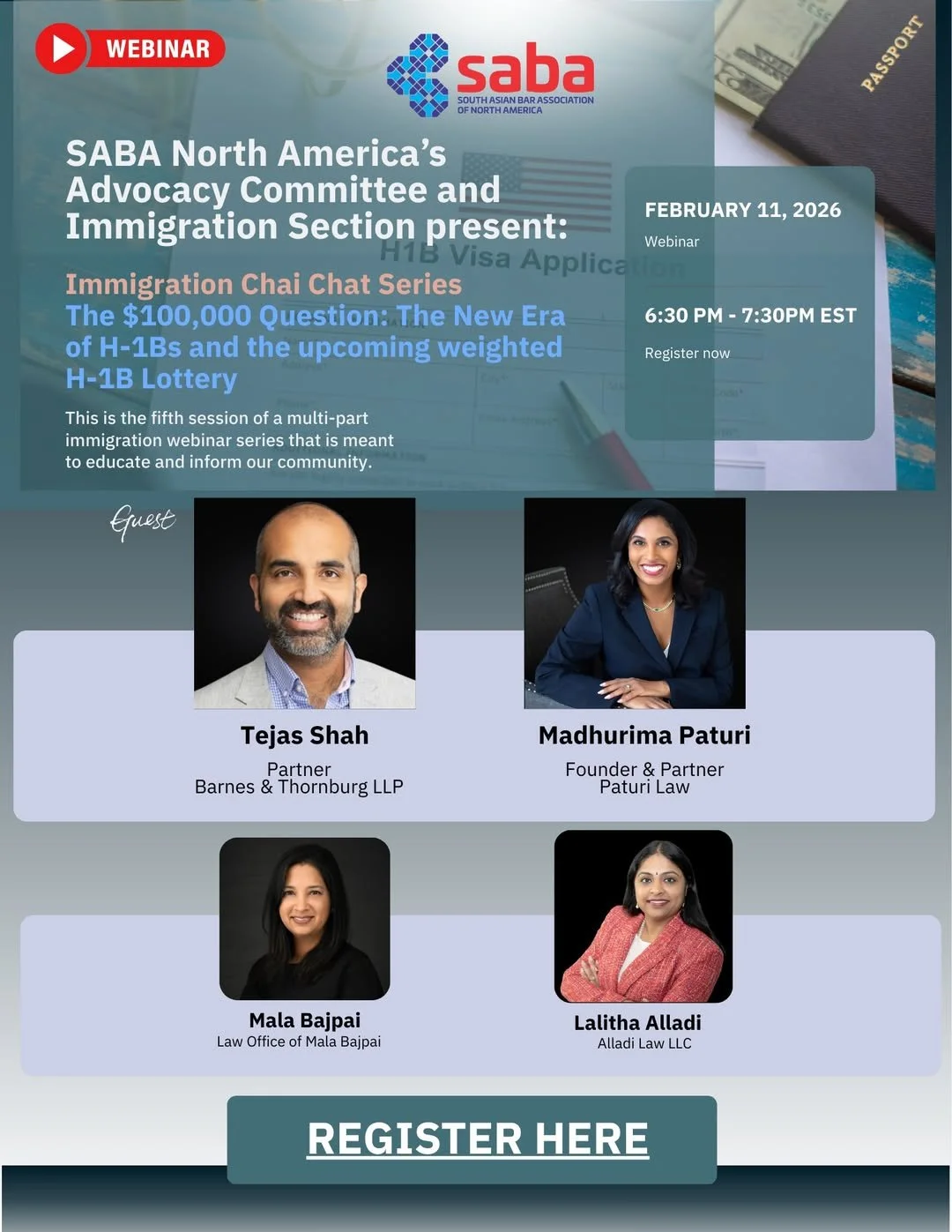 Join SABA North America’s Advocacy Committee and Immigration Section for the latest installment of our Immigration Chai Chat Series—just in time for H-1B season.
